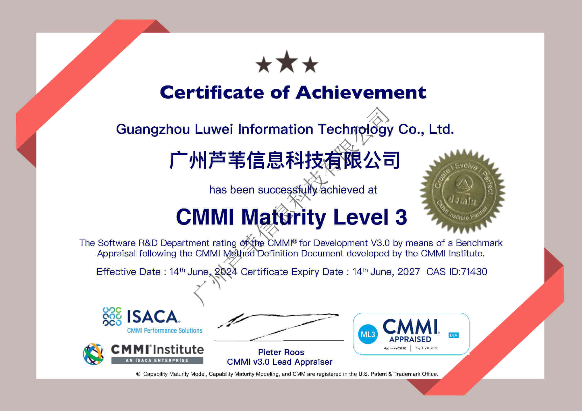 CMMI认证证书