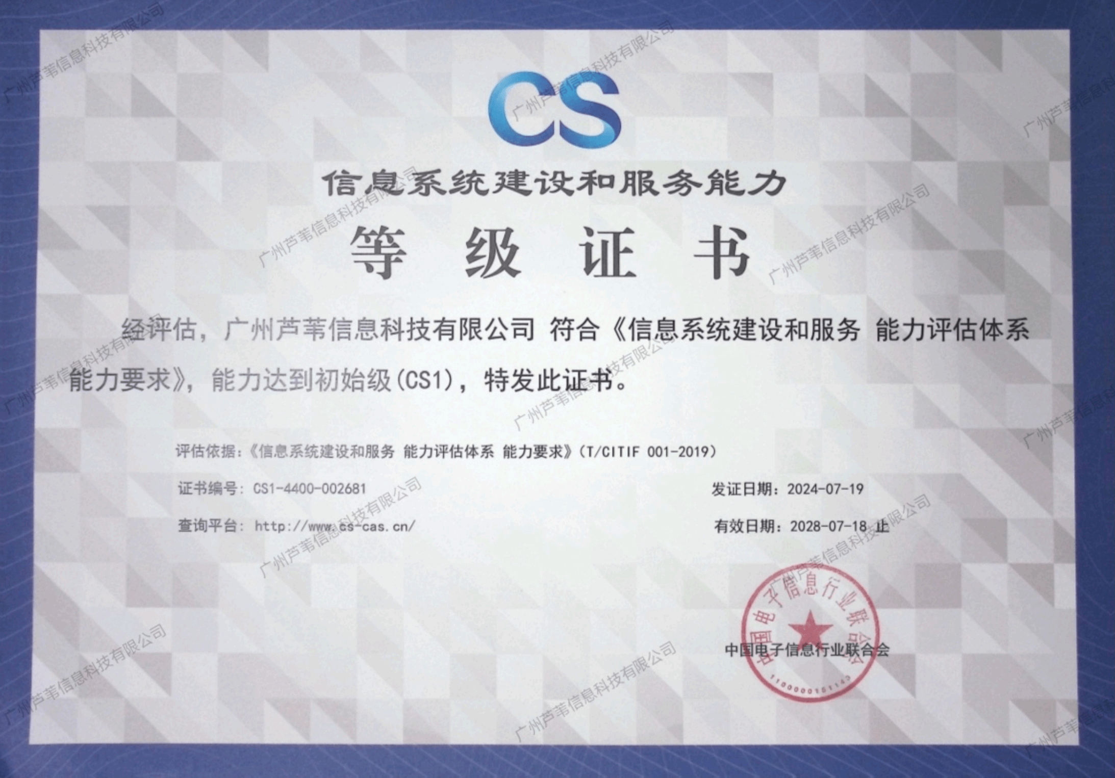 信息系统建设和服务能力等级证书