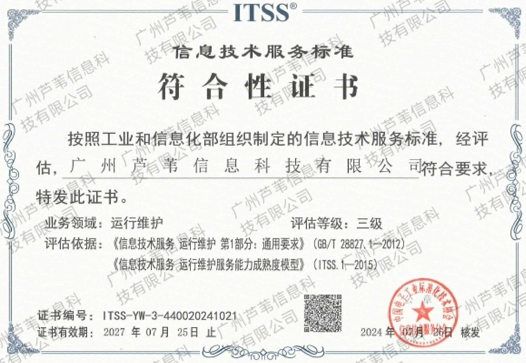 信息技术服务标准符合性证书