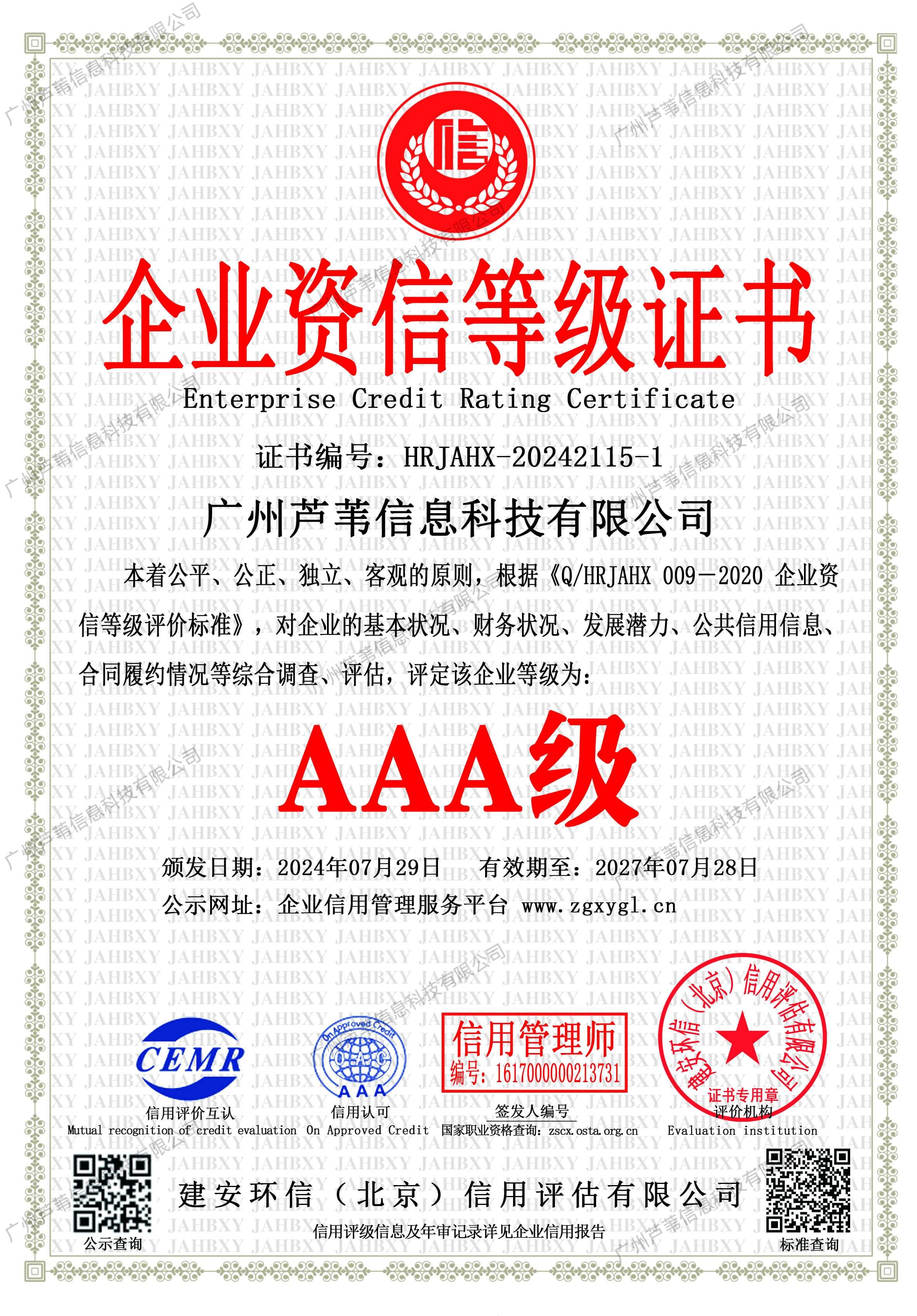 企业信用等级证书
